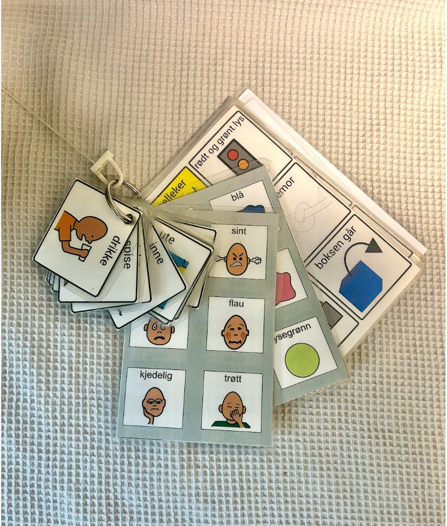 I 2021 startet vi med kommunikasjonskort som alle ansatte har på seg, "Snakkesmykke" som støtte til det verbale språket for alle barn. Sammen med barna lager vi "tematavler" knyttet til lek, hverdagssituasjoner, følelser, aktivteter m.m.
